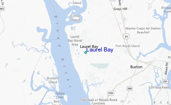 Use this relief map to navigate to tide stations, surf breaks and cities that are in the area of Laurel Bay.