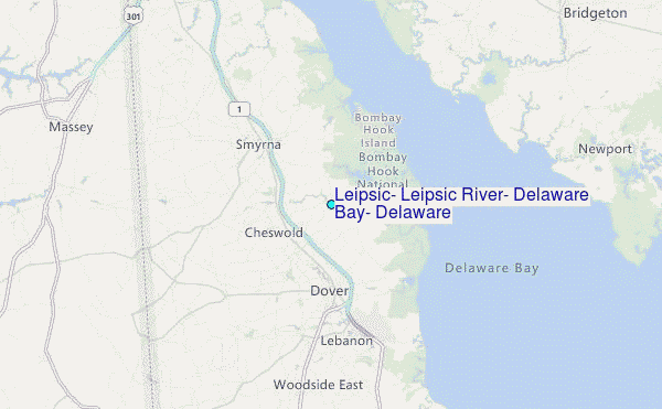 Use this relief map to navigate to tide stations, surf breaks and cities that are in the area of Leipsic, Leipsic River, Delaware Bay, Delaware.