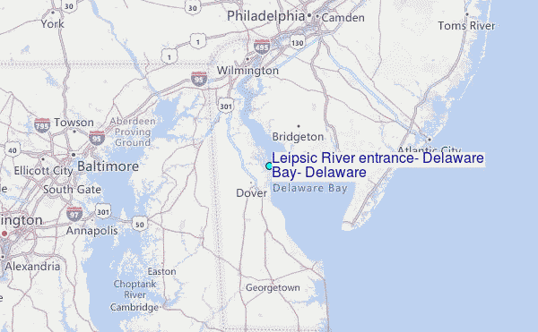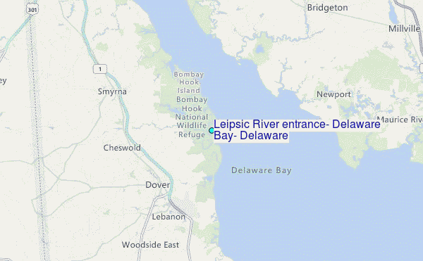 Use this relief map to navigate to tide stations, surf breaks and cities that are in the area of Leipsic River entrance, Delaware Bay, Delaware.