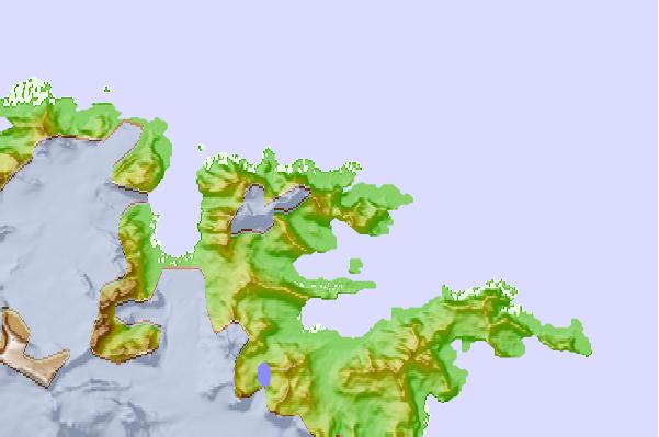 Use this relief map to navigate to tide stations, surf breaks and cities that are in the area of Leith Harbor, South Georgia.