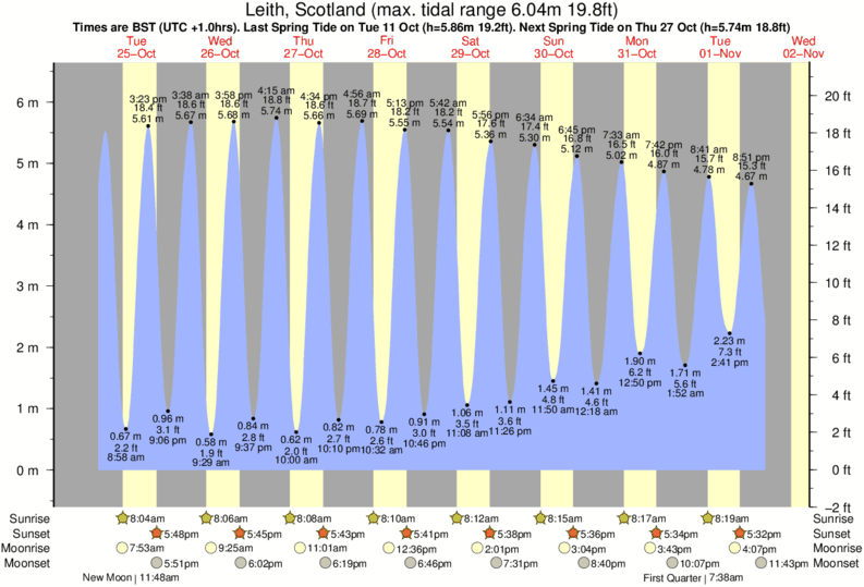 December and January Tide charts for Leith: The tide charts below show the height, time and date of high and low tides for the next 30 days.