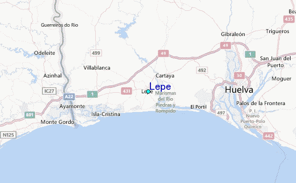 Use this relief map to navigate to tide stations, surf breaks and cities that are in the area of Lepe.