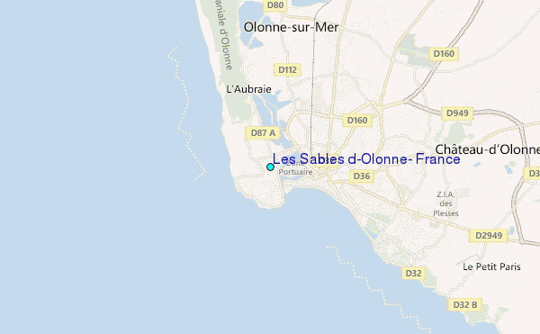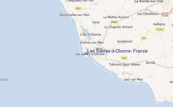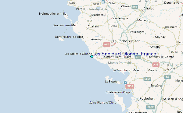 Use this relief map to navigate to tide stations, surf breaks and cities that are in the area of Les Sables d'Olonne, France.