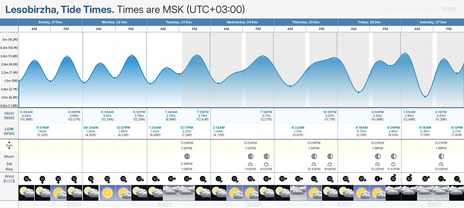 Tide Times for Lesobirzha (tomorrow): Sunday 21 December 2025