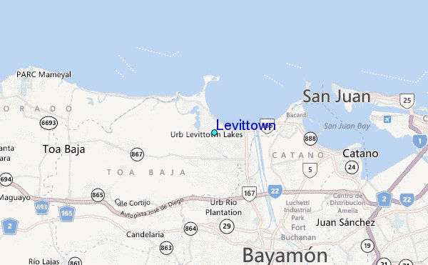 Use this relief map to navigate to tide stations, surf breaks and cities that are in the area of Levittown.