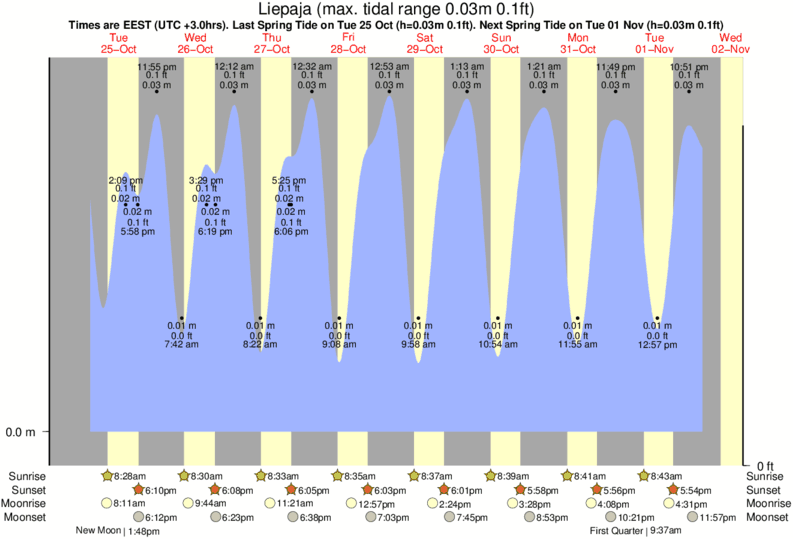 Tide chart for LiepajaShowing low and high tide times for the next 30 days at Liepaja. Tide Times are EET (UTC +2.0hrs).