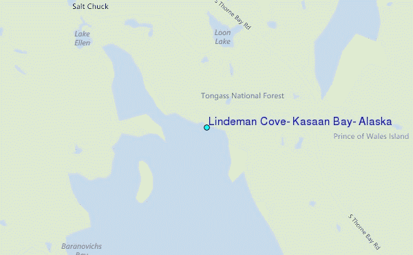 Use this relief map to navigate to tide stations, surf breaks and cities that are in the area of Lindeman Cove, Kasaan Bay, Alaska.