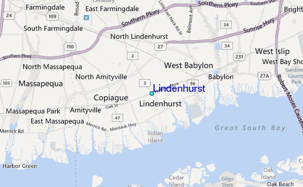 Use this relief map to navigate to tide stations, surf breaks and cities that are in the area of Lindenhurst.