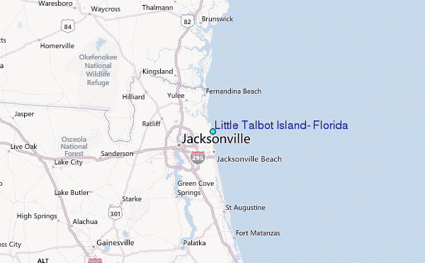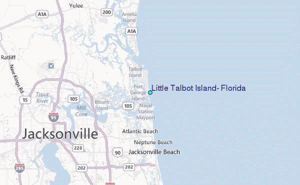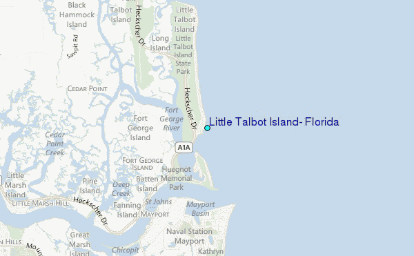 Use this relief map to navigate to tide stations, surf breaks and cities that are in the area of Little Talbot Island, Florida.