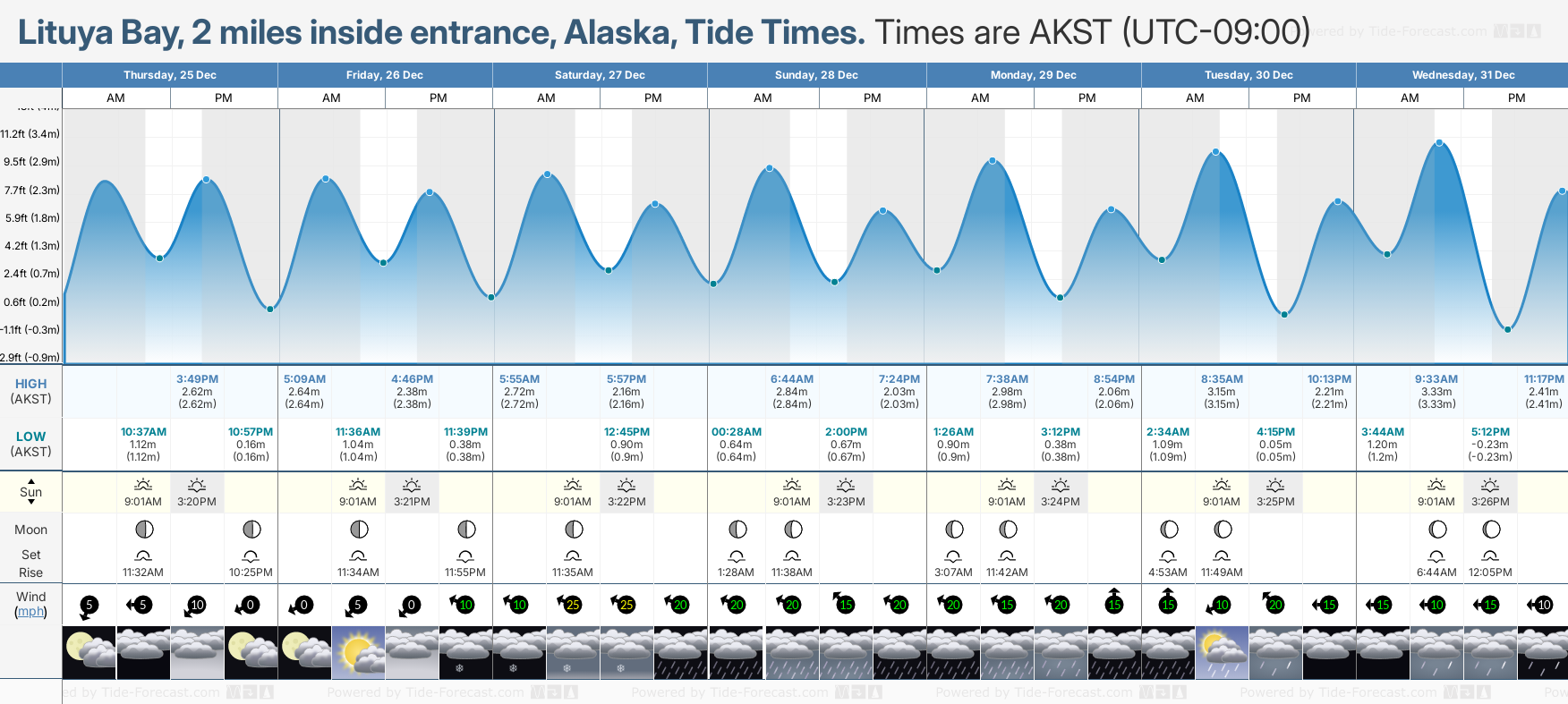Lituya Bay, 2 miles inside entrance tide times for December and January