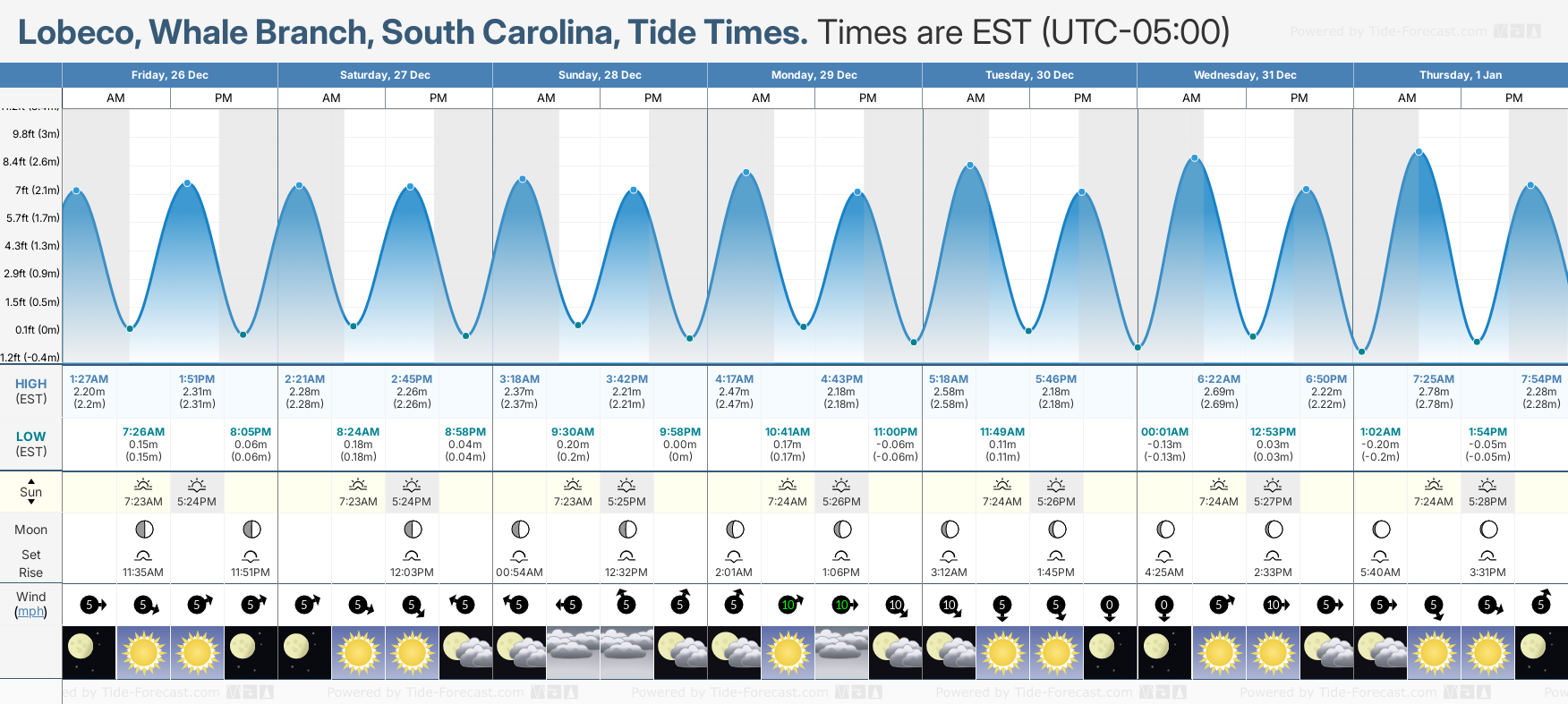NOTE: Use of this site for Lobeco, Whale Branch, South Carolina tide times is subject to our terms.