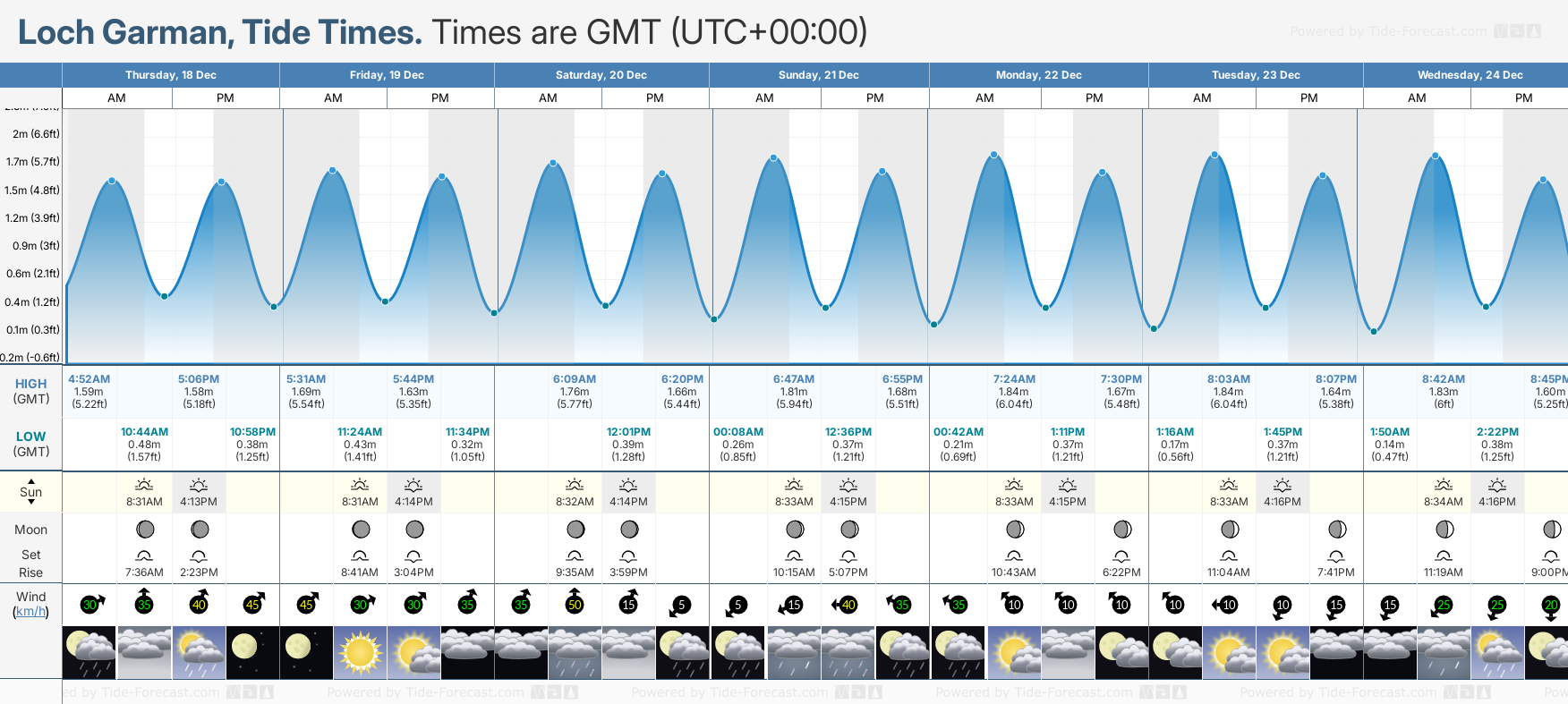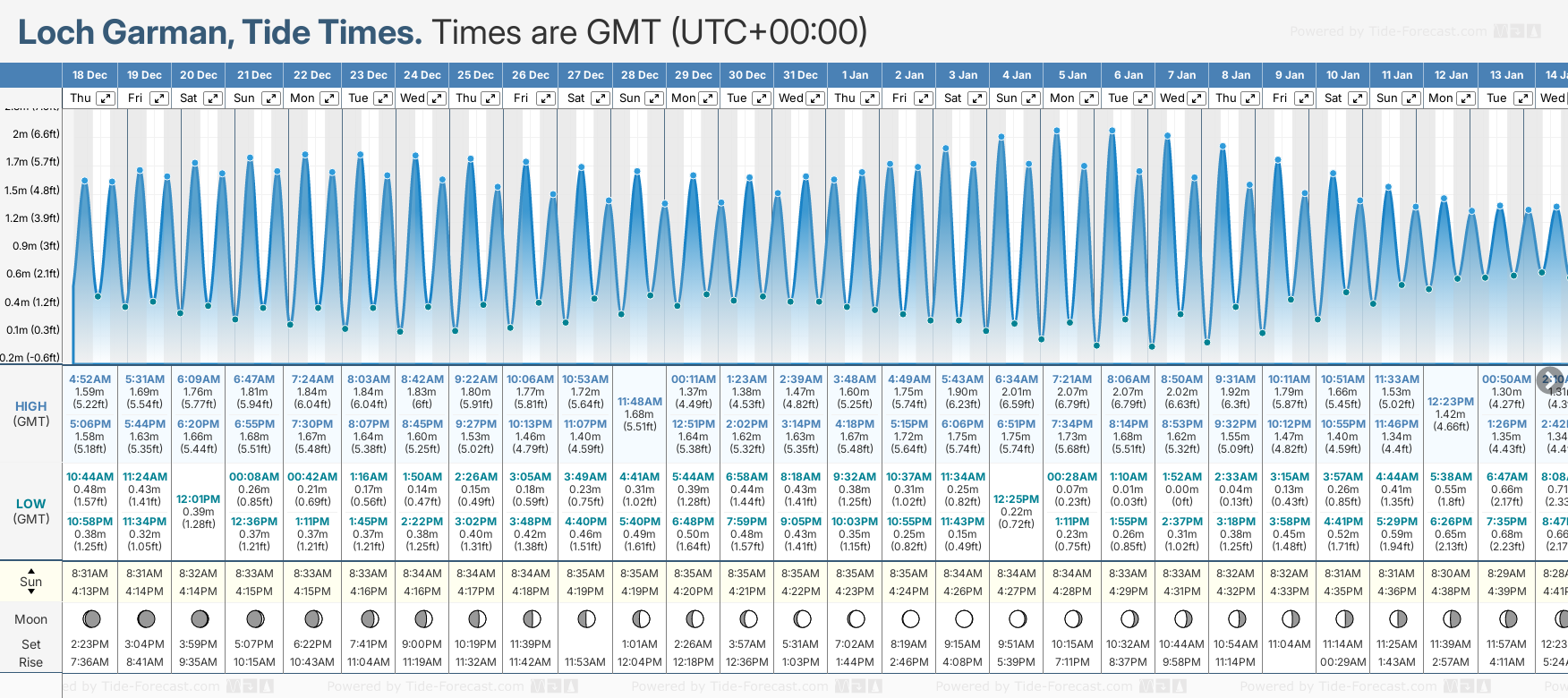 December and January Tide charts for Loch Garman: The tide charts below show the height, time and date of high and low tides for the next 30 days.