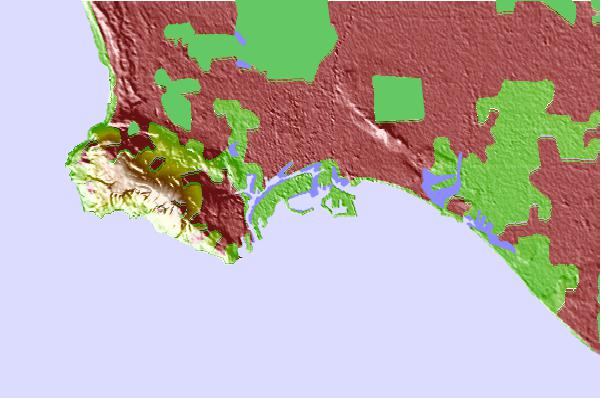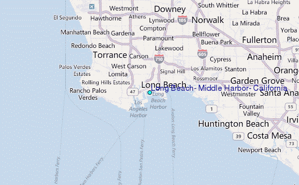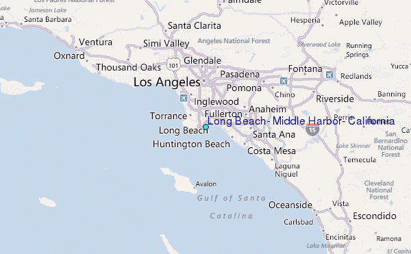 Use this relief map to navigate to tide stations, surf breaks and cities that are in the area of Long Beach, Middle Harbor, California.