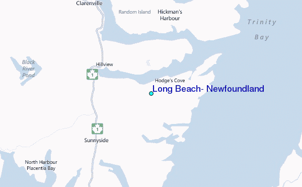 Other Nearby Locations' tide tables and tide charts to Long Beach, Newfoundland: