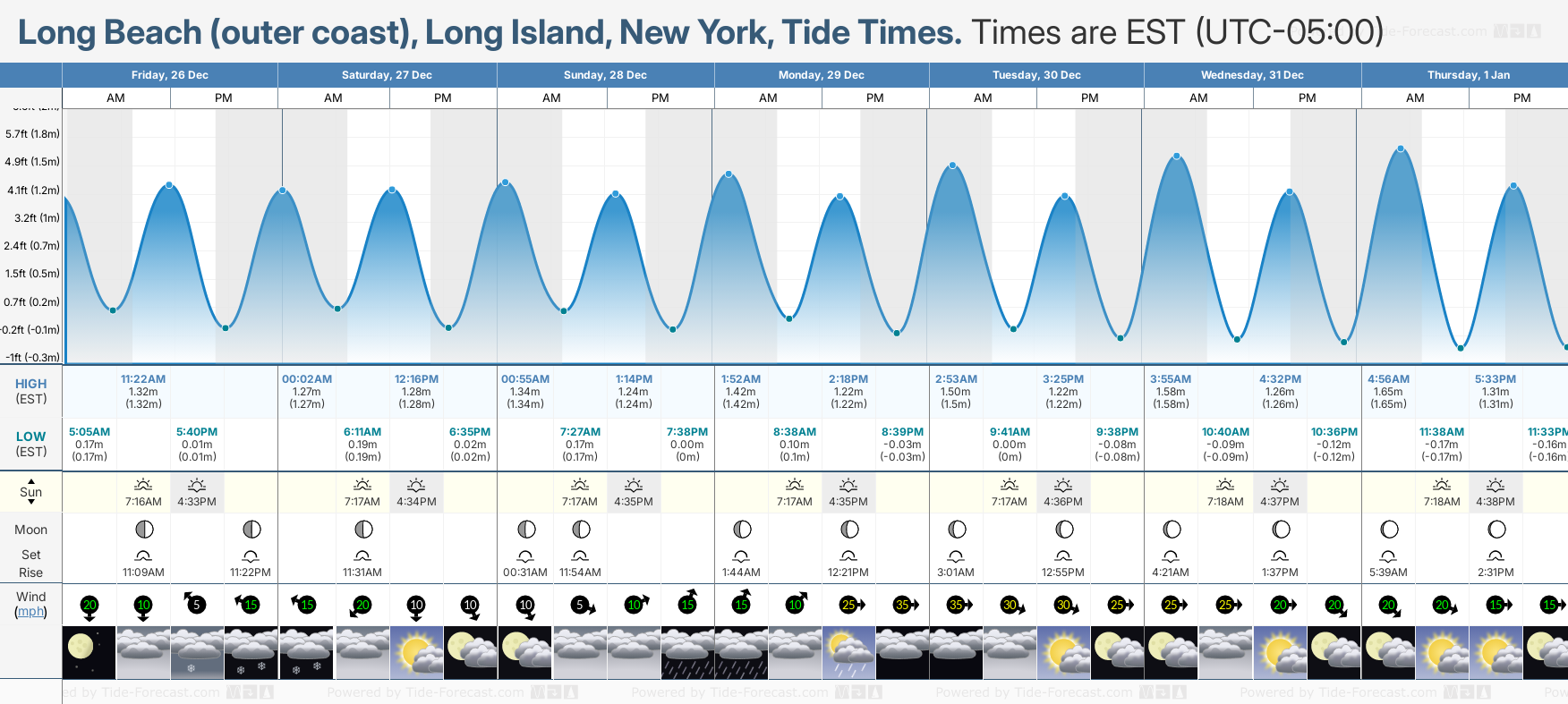 Tide Times for Long Beach (outer coast), Long Island (tomorrow): Friday 26 December 2025