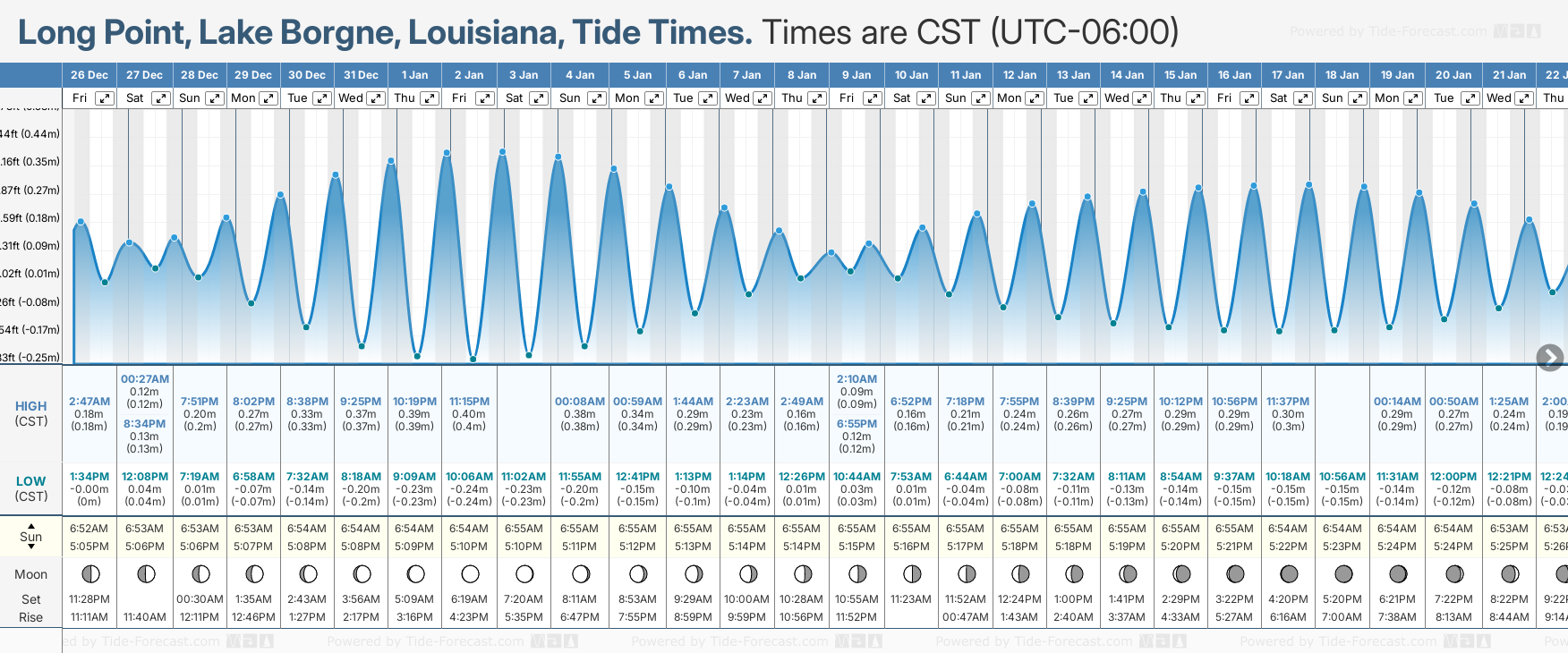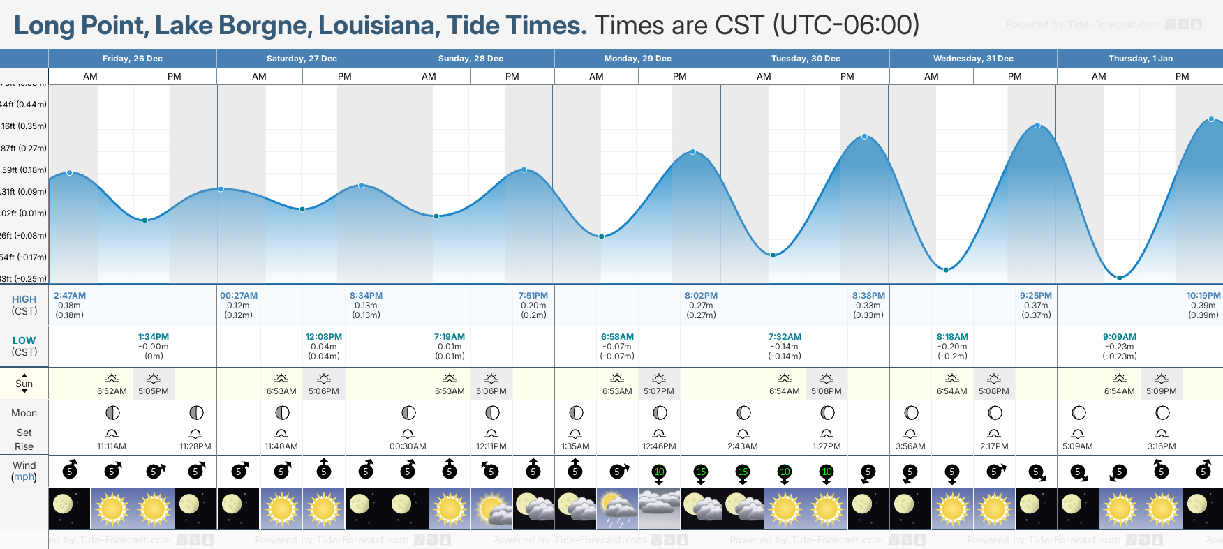 Tide Times for Long Point, Lake Borgne (tomorrow): Friday 26 December 2025