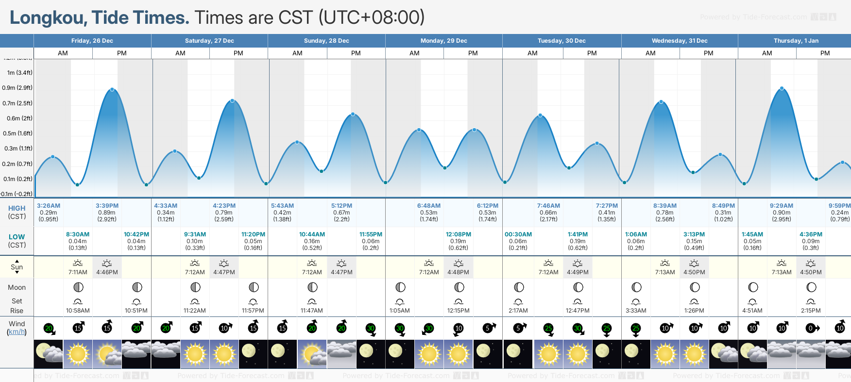 Tide Times for Longkou (tomorrow): Friday 26 December 2025