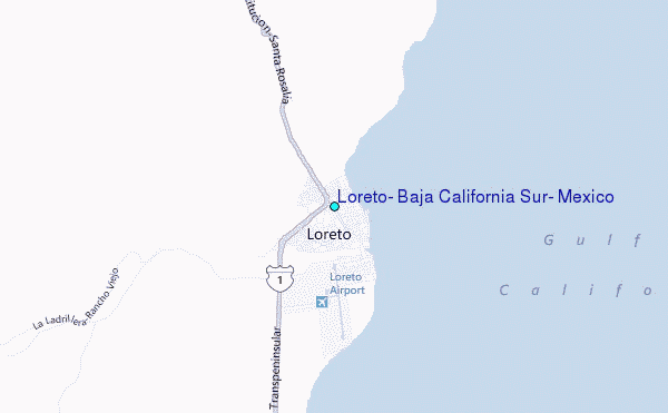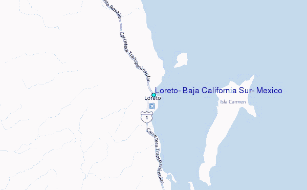 Use this relief map to navigate to tide stations, surf breaks and cities that are in the area of Loreto, Baja California Sur, Mexico.