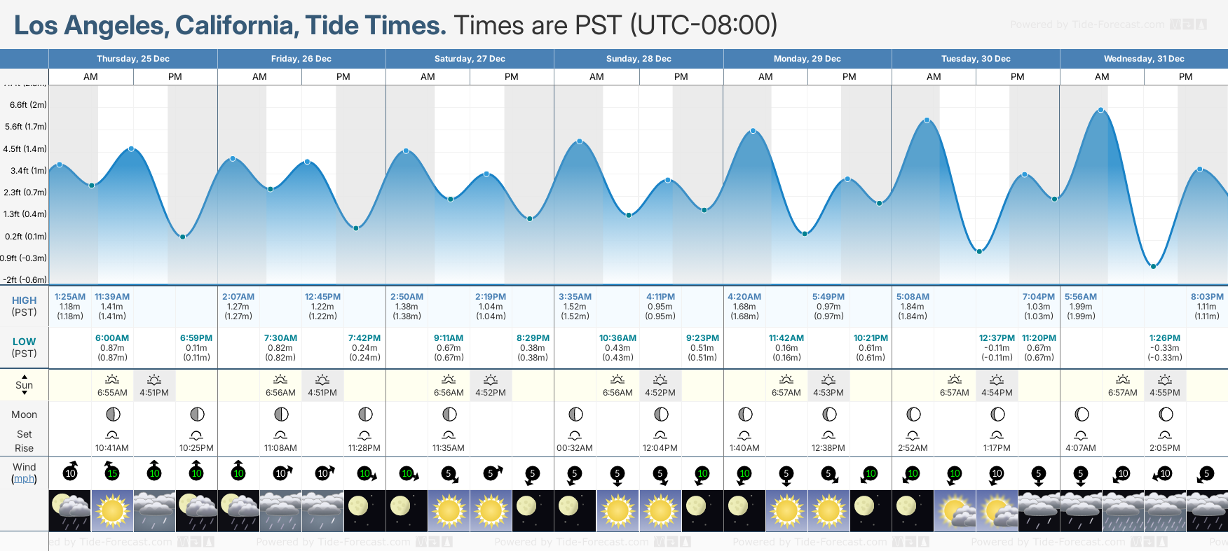 Tide Times for Los Angeles: Wednesday 31 December 2025