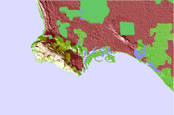 Use this relief map to navigate to tide stations, surf breaks and cities that are in the area of Los Angeles Harbor, Mormon Island, California.