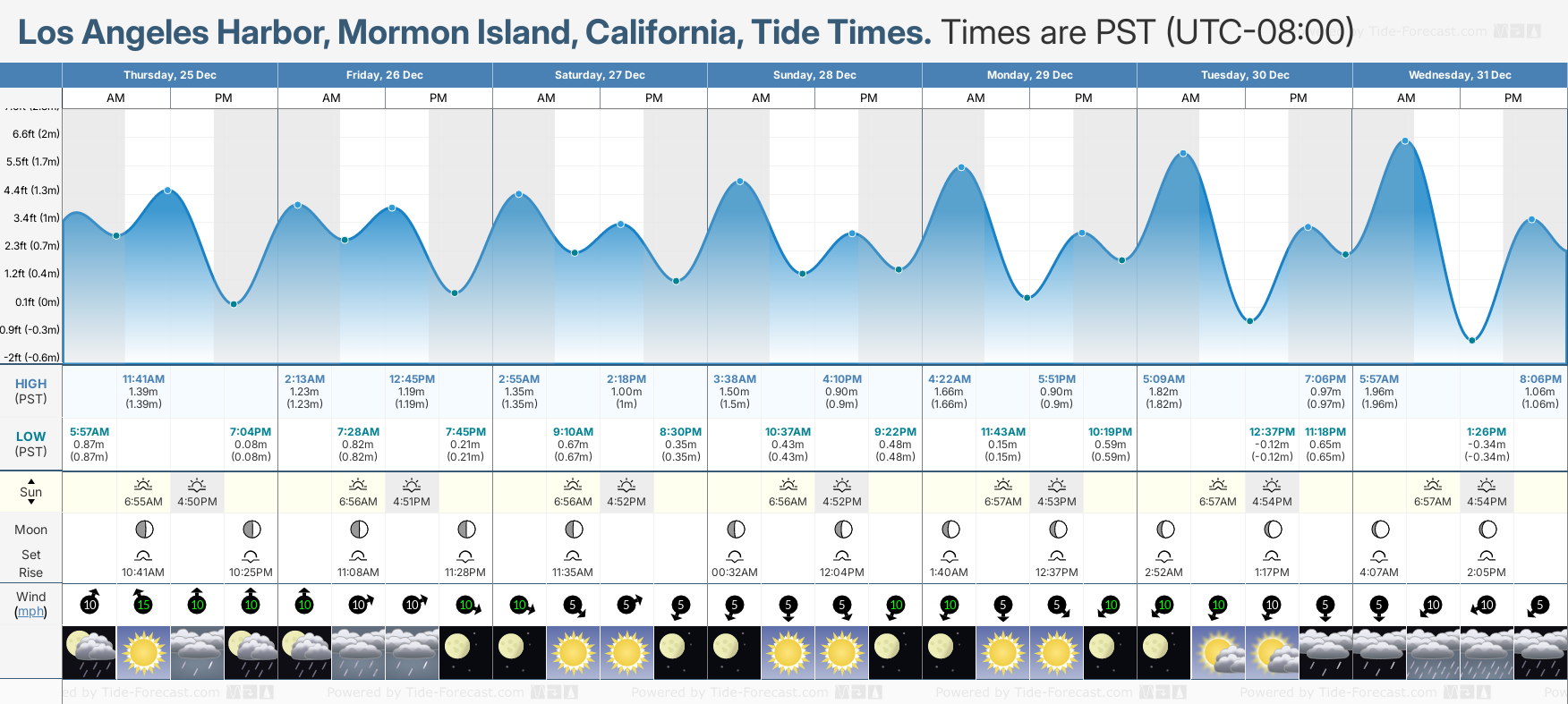 Today's tide times for Los Angeles Harbor, Mormon Island: Thursday 25 December 2025