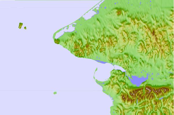 Use this relief map to navigate to tide stations, surf breaks and cities that are in the area of Lost River, Seward Peninsula, Alaska.