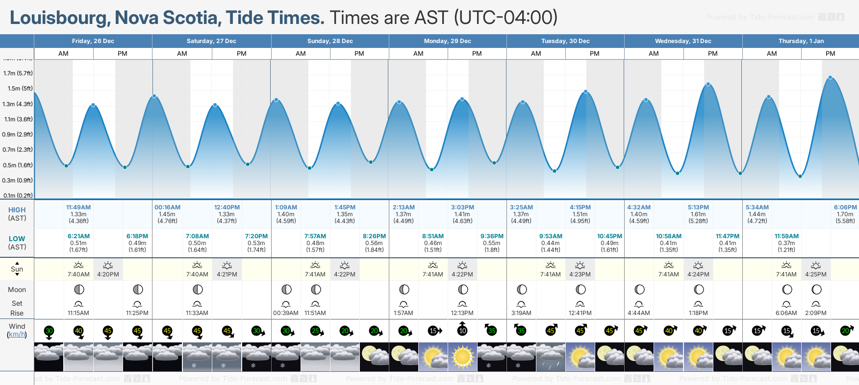 NOTE: Use of this site for Louisbourg, Nova Scotia tide times is subject to our terms.