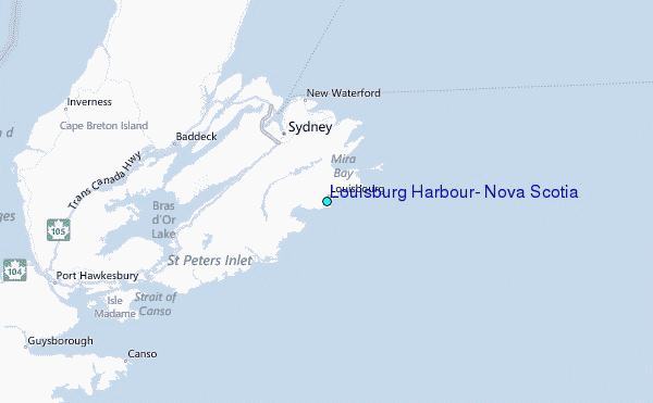 Other Nearby Locations' tide tables and tide charts to Louisburg Harbour, Nova Scotia:
