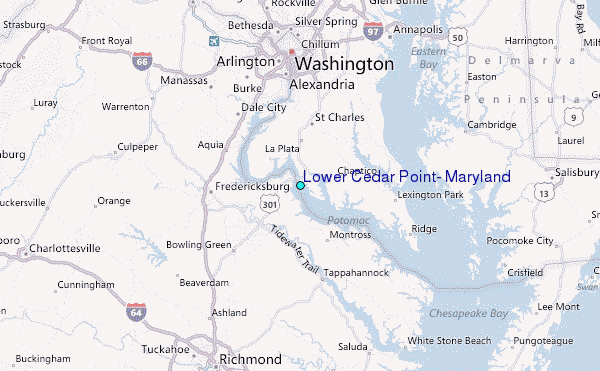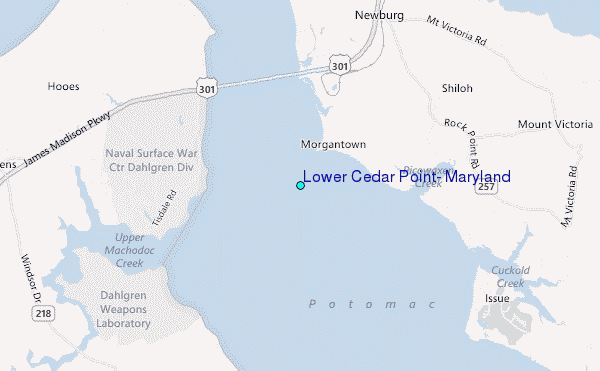 Use this relief map to navigate to tide stations, surf breaks and cities that are in the area of Lower Cedar Point, Maryland.