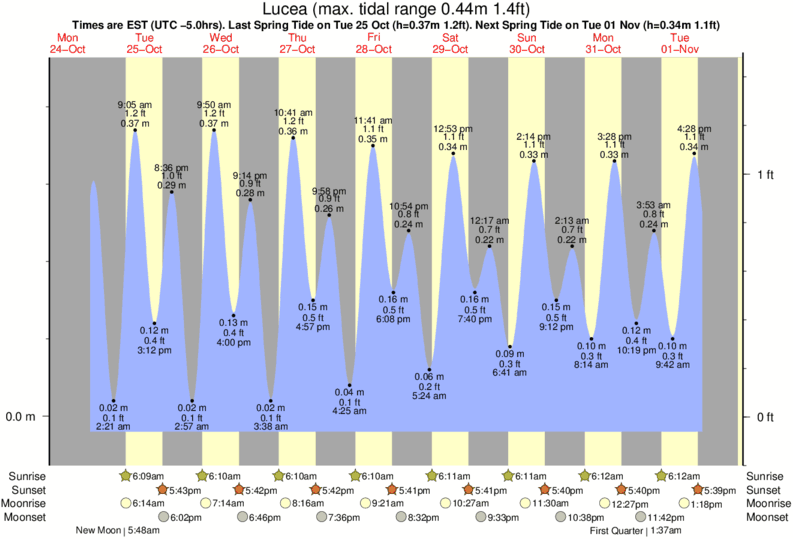 Tide chart for LuceaShowing low and high tide times for the next 30 days at Lucea. Tide Times are EST (UTC -5.0hrs).