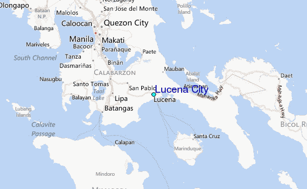 Use this relief map to navigate to tide stations, surf breaks and cities that are in the area of Lucena City.