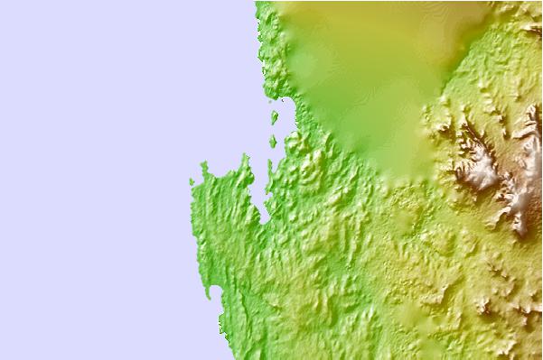 Use this relief map to navigate to tide stations, surf breaks and cities that are in the area of Luderitz Bay, Namibia.