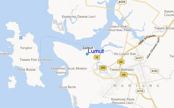 Use this relief map to navigate to tide stations, surf breaks and cities that are in the area of Lumut.