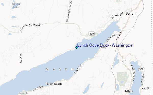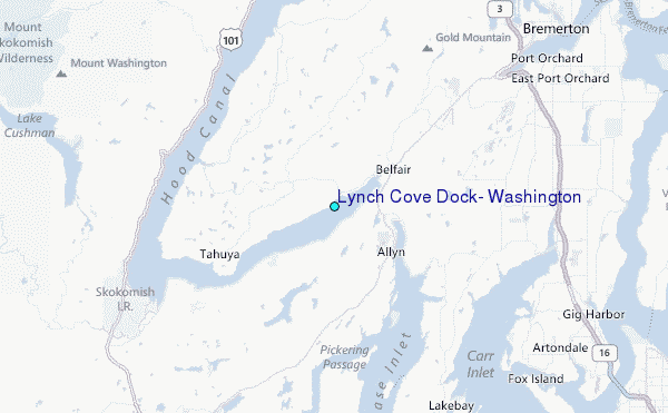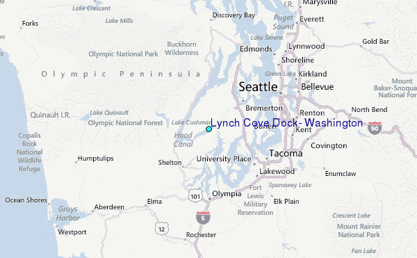 Use this relief map to navigate to tide stations, surf breaks and cities that are in the area of Lynch Cove Dock, Washington.