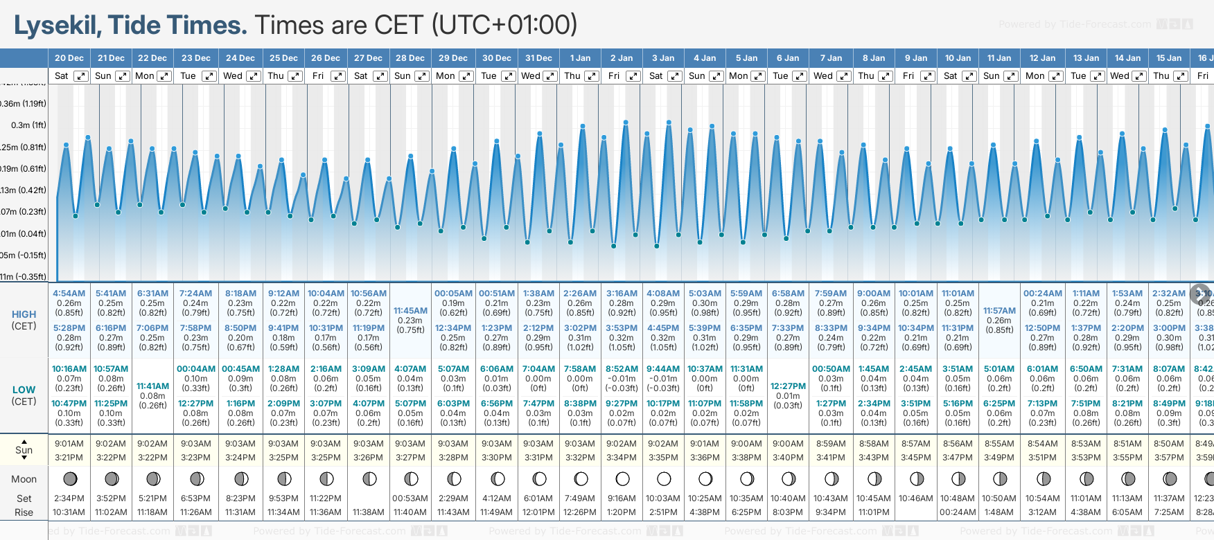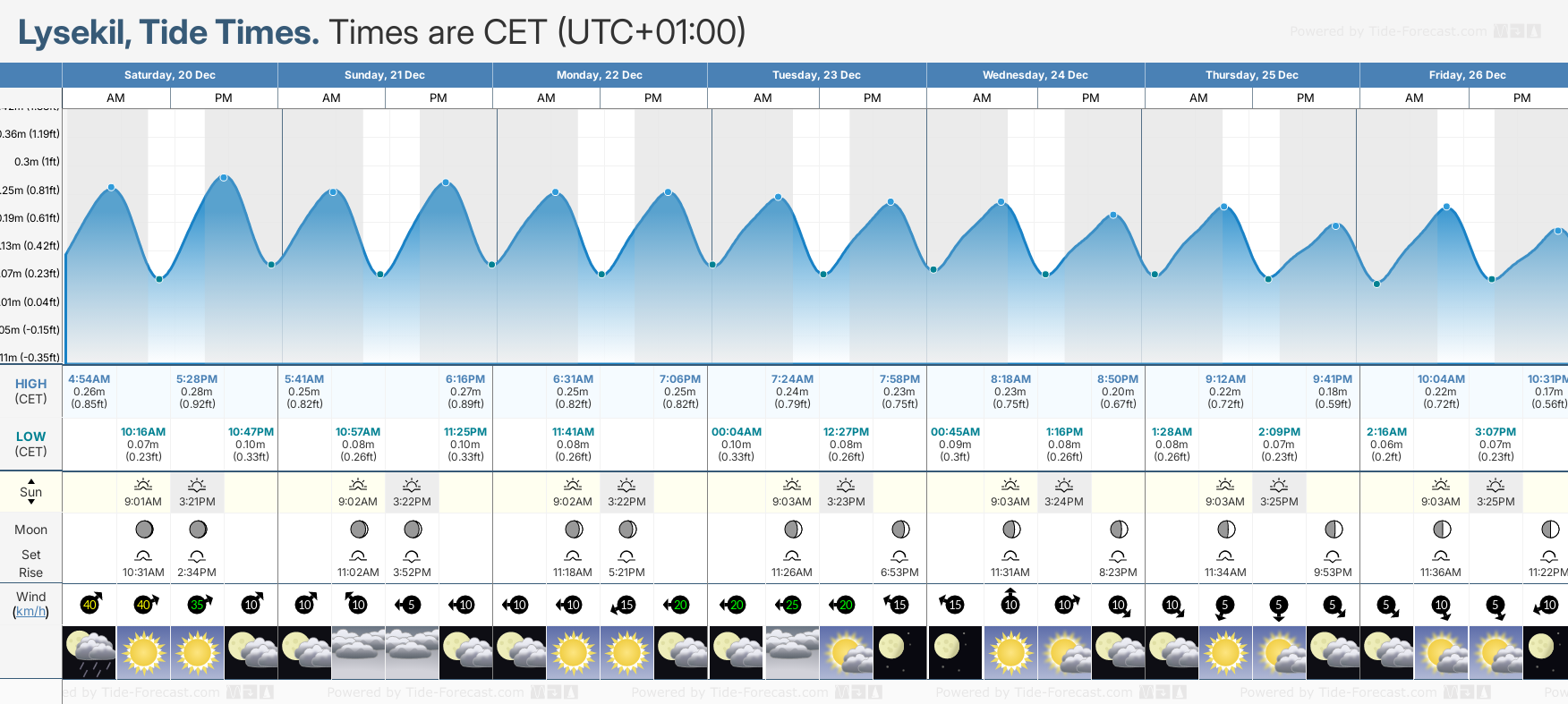 December and January Tide charts for Lysekil: The tide charts below show the height, time and date of high and low tides for the next 30 days.