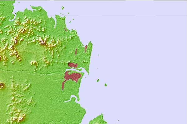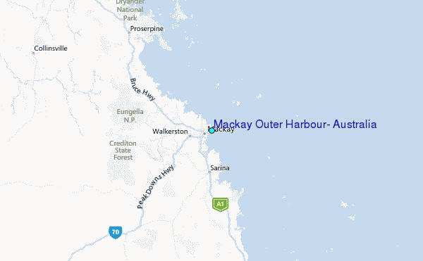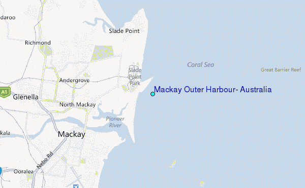 Use this relief map to navigate to tide stations, surf breaks and cities that are in the area of Mackay Outer Harbour, Australia.