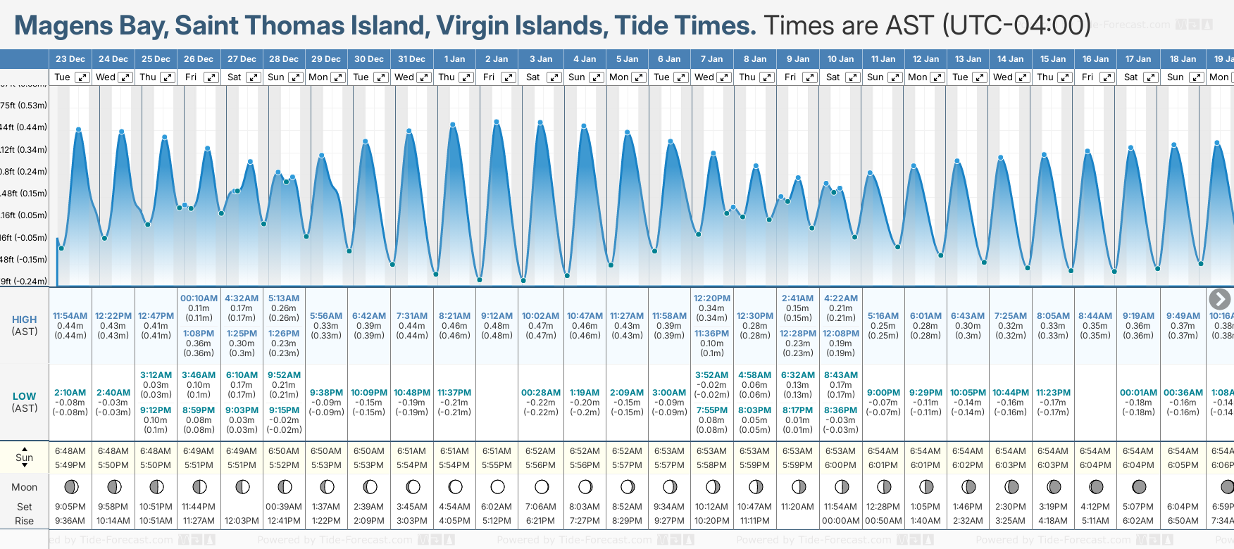 Tide Times for Magens Bay, Saint Thomas Island: Sunday 04 January 2026