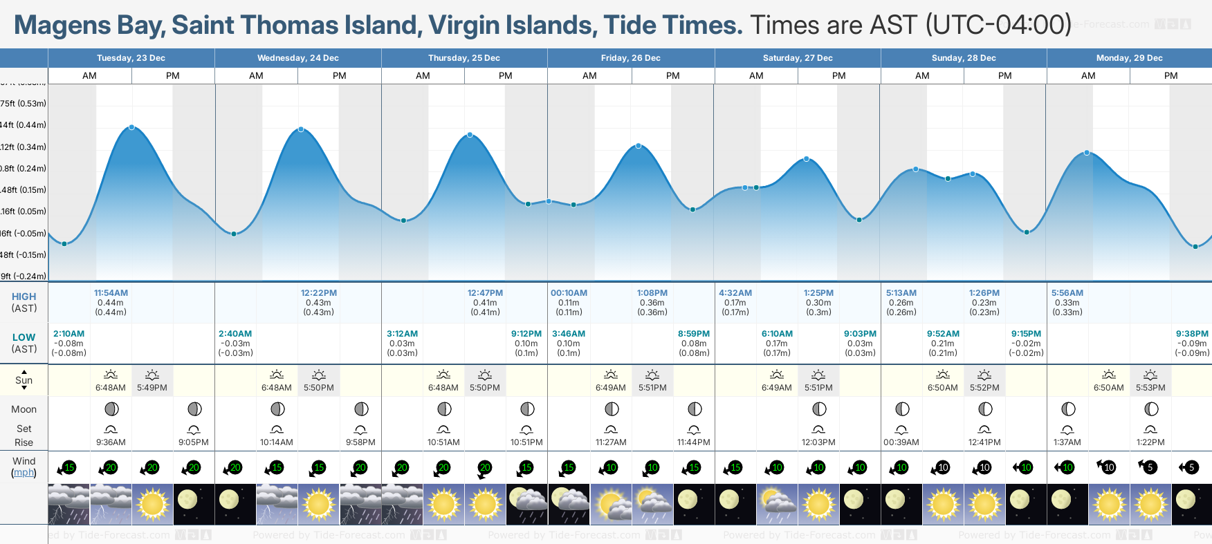 Tide Times for Magens Bay, Saint Thomas Island (tomorrow): Wednesday 24 December 2025