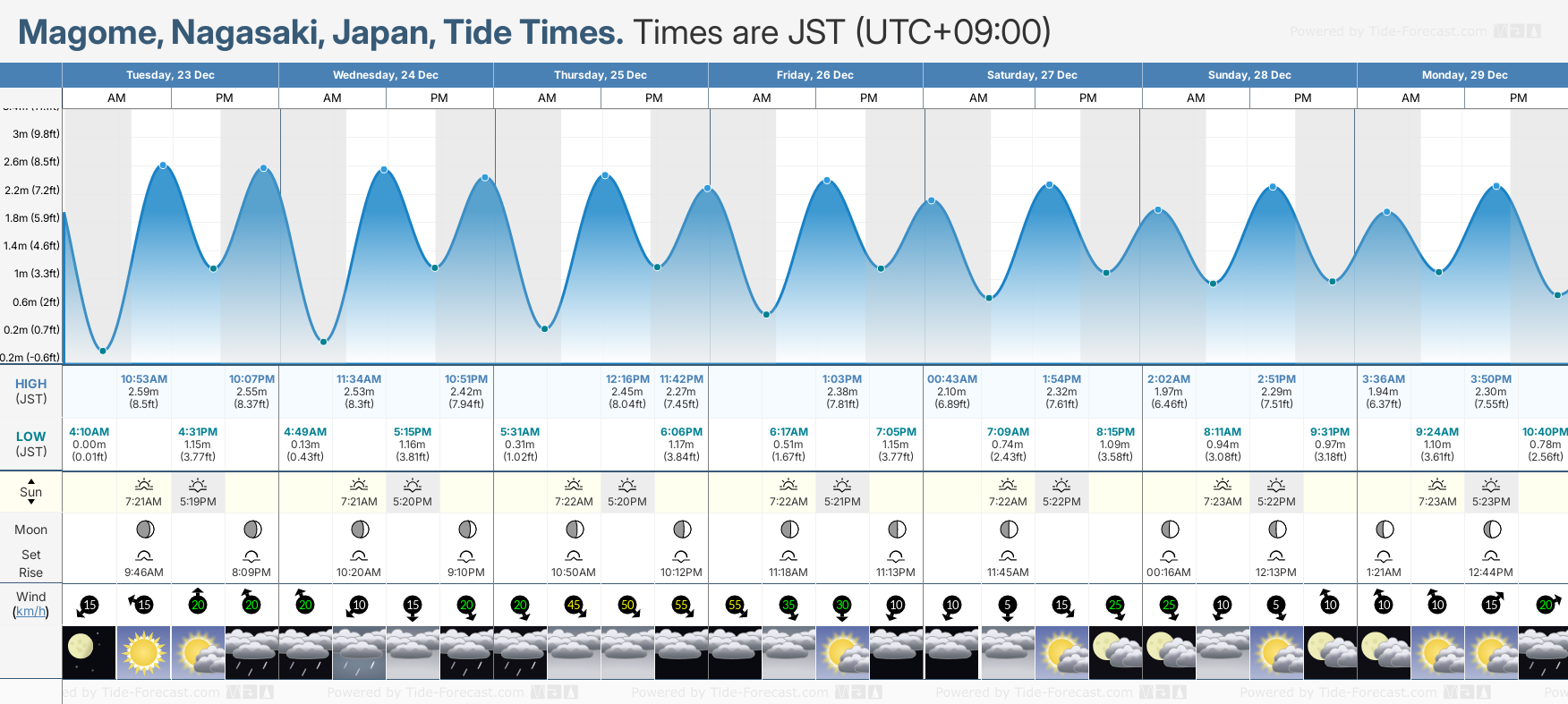 Tide Times for Magome (tomorrow): Wednesday 24 December 2025
