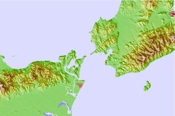 Use this relief map to navigate to tide stations, surf breaks and cities that are in the area of Magosaki, Tokusima, Japan.