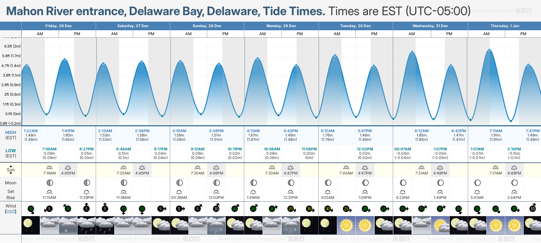 Today's tide times for Mahon River entrance, Delaware Bay, Delaware