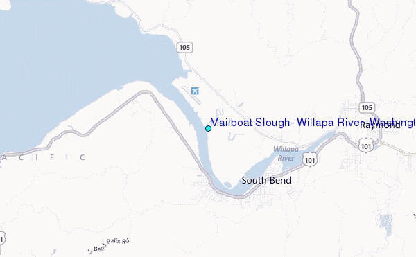 Use this relief map to navigate to tide stations, surf breaks and cities that are in the area of Mailboat Slough, Willapa River, Washington.