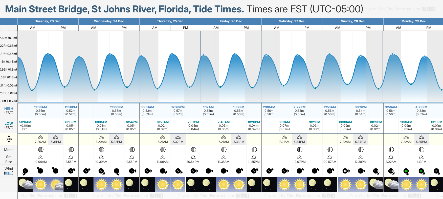 Today's tide times for Main Street Bridge, St Johns River: Wednesday 24 December 2025