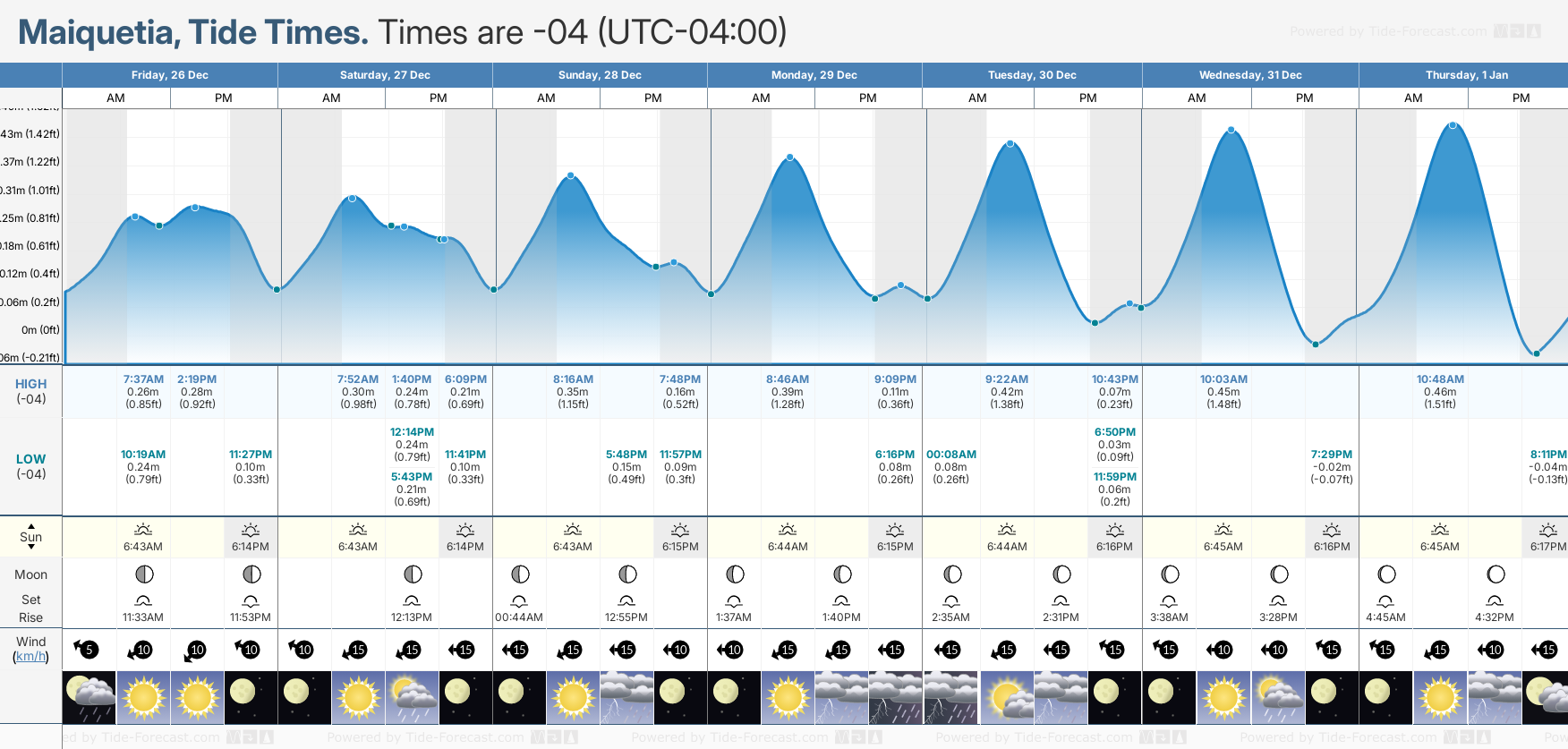 Tide Times for Maiquetia (tomorrow): Friday 26 December 2025