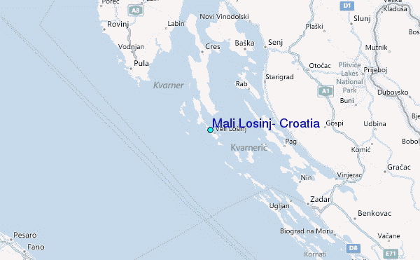 Use this relief map to navigate to tide stations, surf breaks and cities that are in the area of Mali Losinj, Croatia.