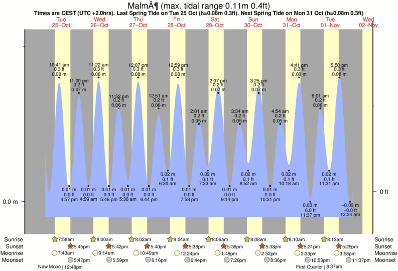 Tide Times are CET (UTC +1.0hrs). Last Spring High Tide at Malmö was on Fri 19 Dec (height: 0.08m 0.3ft). Next high Spring Tide at Malmö will be on Thu 25 Dec (height: 0.07m 0.2ft).