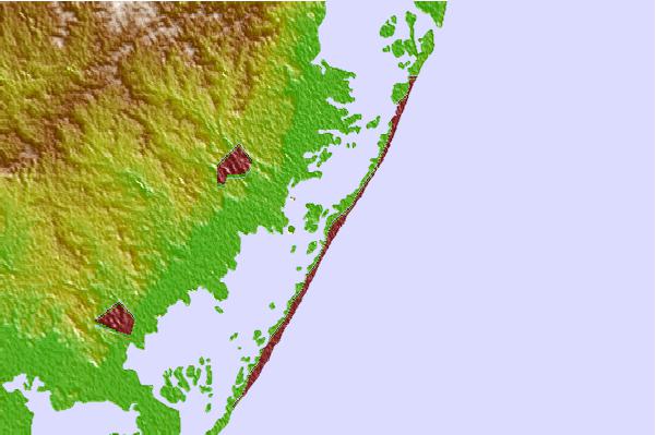Use this relief map to navigate to tide stations, surf breaks and cities that are in the area of Manahawkin Drawbridge, Manahawkin Bay, New Jersey.