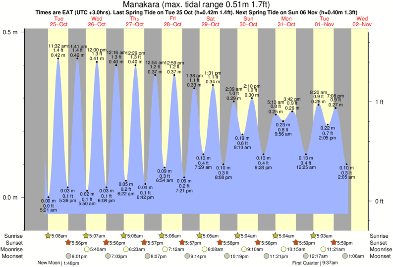 Tide Times are EAT (UTC +3.0hrs). Last Spring High Tide at Manakara was on Thu 04 Dec (height: 0.41m 1.3ft). Next high Spring Tide at Manakara will be on Mon 22 Dec (height: 0.37m 1.2ft).