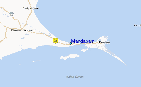 Other Nearby Locations' tide tables and tide charts to Mandapam: