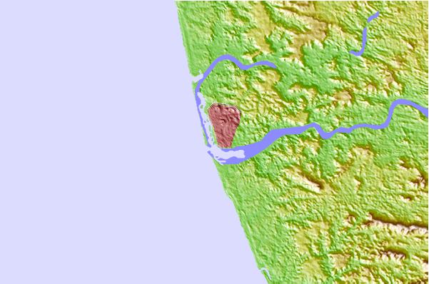 Use this relief map to navigate to tide stations, surf breaks and cities that are in the area of Mangalore, India.